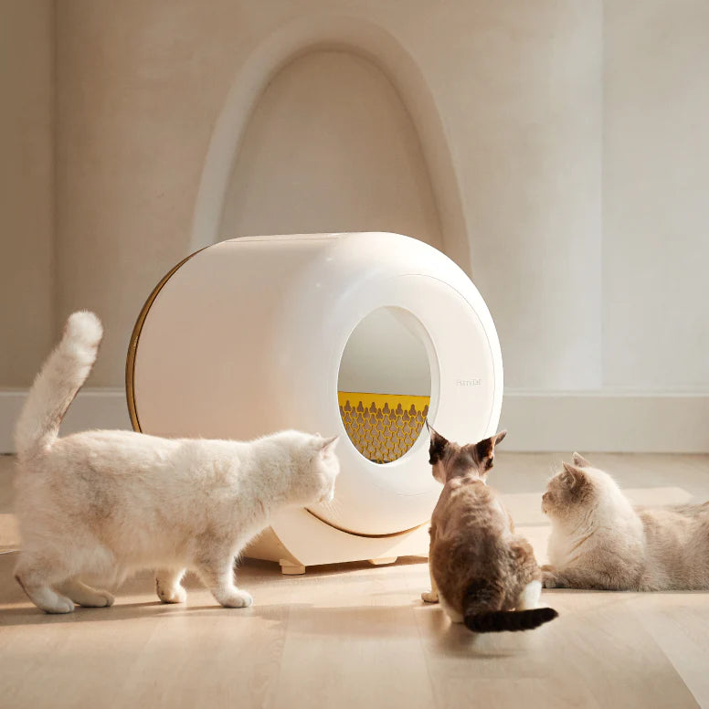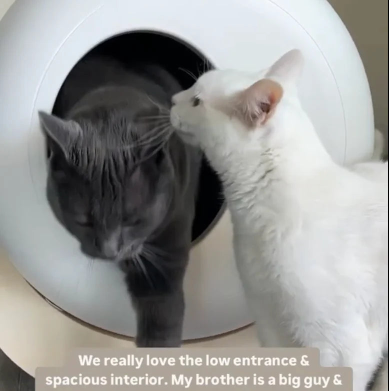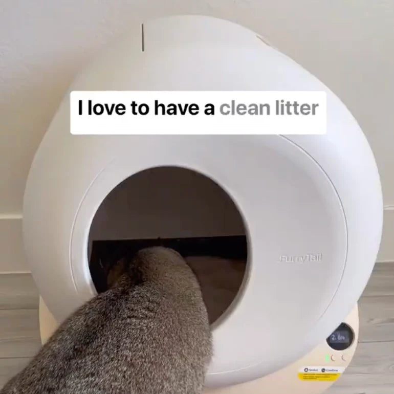 The Automatic Litter Box Pro is exclusive to FurryTail and is specially designed for use in multi-cat households. We collaborated with the manufacturer in the design of the product to ensure that it is safe, easy-to-use, accessible for all cats, and can distinguish between cats for accurate health monitoring. Just replace the waste bag every 5 days and periodically provide a deep clean and refresh the litter. As with all FurryTail products, our Feline Focus Group cats have tested the product and they gave it a tail up with a kink!