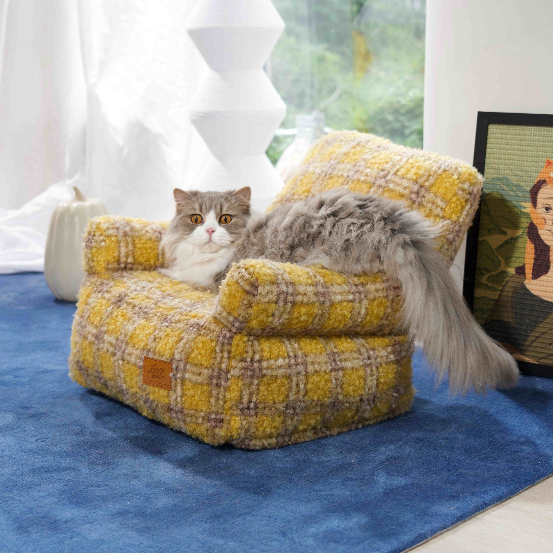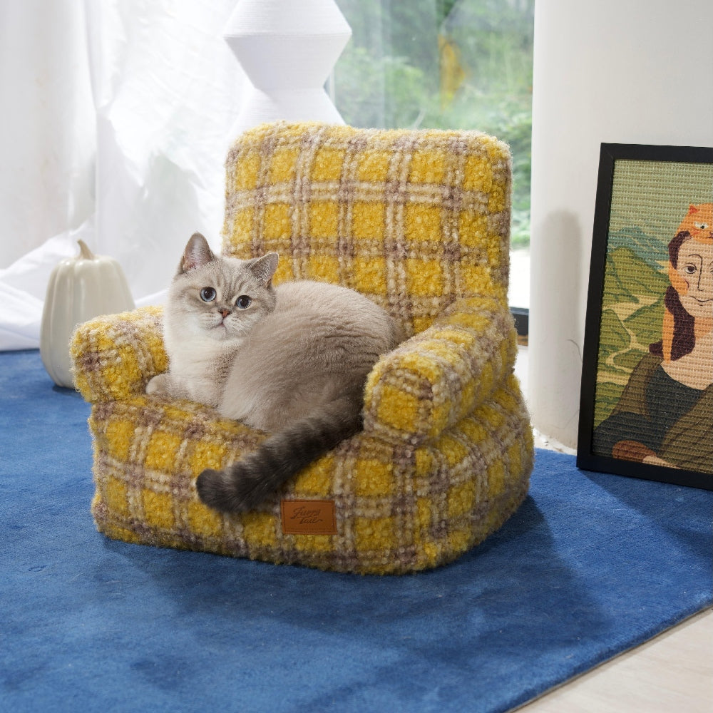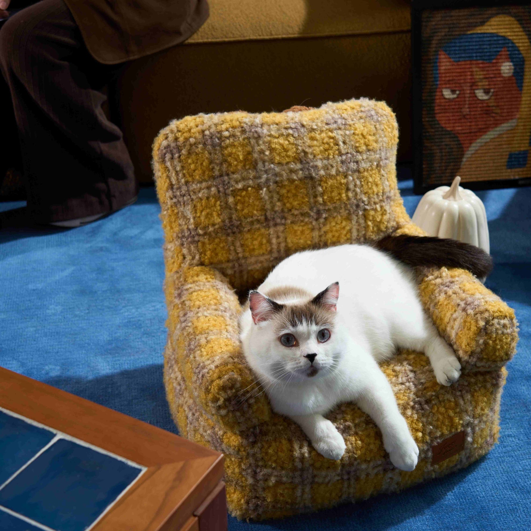 Comfort Meets Modern LivingYour beloved cat deserves more than just a bed—it deserves a throne. Blending vintage charm with contemporary design, this pet sofa effortlessly complements any living space. It creates a private sanctuary for your cat while elevating your home's aesthetic. Engineered for Feline ErgonomicsCrafted with ultra-soft boucle fabric and high-density padding, the sofa offers a cloud-like feel that encourages deep relaxation. The ergonomic structure supports natural feline resting postures, helping to relieve joint pressure and fostering deep, restorative rest Stable, Safe & Sustainable by DesignThe non-slip silicone base keeps the sofa steady and protects your floors from scratches. Stuffed with high-quality, recyclable PP cotton, it’s durable, supportive, and eco-friendly—so your cat can lounge safely, comfortably, and sustainably. Practical Design for Everyday UseDetachable, machine-washable cover makes cleaning effortless, while the lightweight structure and integrated handle allow easy relocation. Blending comfort, practicality, and durability, it’s thoughtfully crafted for daily use.