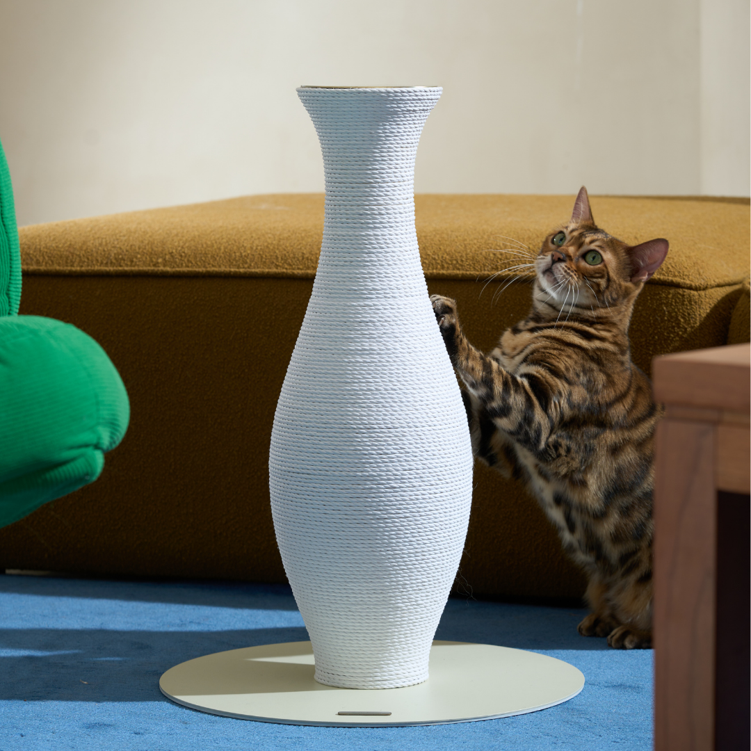 Attractive curved design turns a functional cat scratcher into modern home decor. -